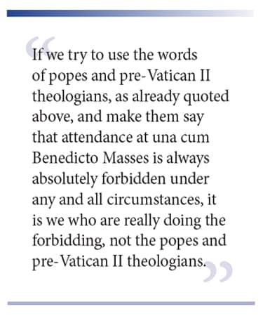 Editor’s commentary: The following article was written by Fr. Martin Stepanich, OFM, and printed in the March 2009 issue of The Four Marks under the title of “Attendance at ‘Una Cum Benedicto’ Tridentine Latin Masses.” Fr. Martin was a faithful Franciscan priest who staunchly resisted the doctrinal and liturgical errors resulting from Vatican II. After his ordination in 1941, Fr. Martin was assigned for further studies by his superiors, eventually receiving a doctorate in sacred theology from Catholic University, Washington DC, in 1948.