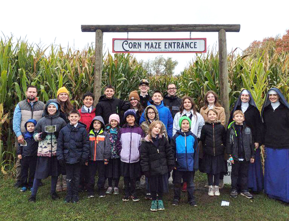 The first quarter was a busy one for St. Philomena’s Academy in Middleville, Michigan. Activities included the All Saints’ Day celebration (top), and a visit to a corn maze.