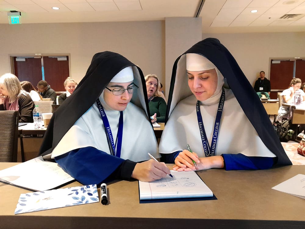 Sr. Bernardine Marie and Sr. Maria Magdalena, stationed in Wayne, Michigan, attend a Hillsdale math seminar.