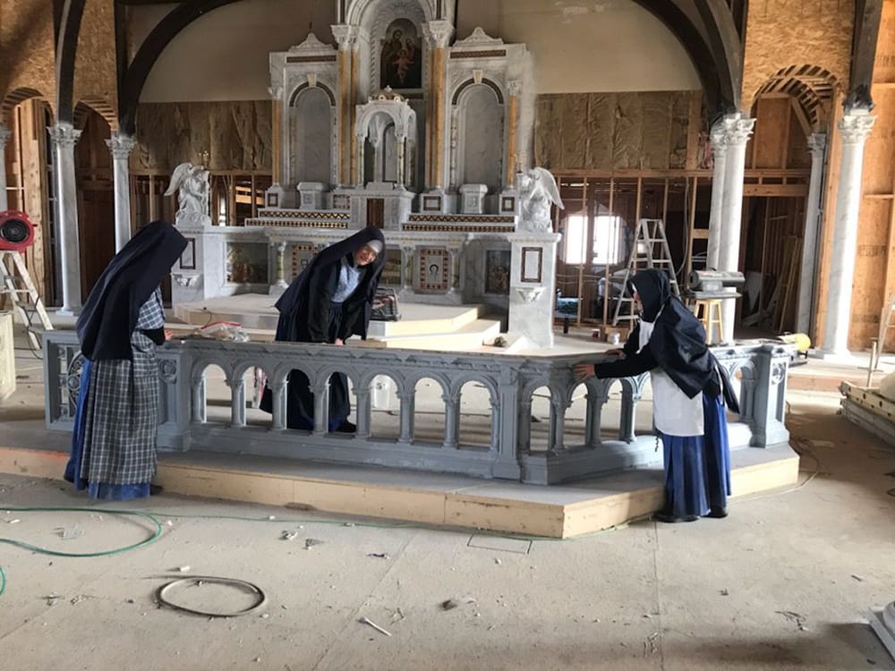 Little by little, work on the church at St. Joseph’s Parish in Olathe, Colorado. progresses. The Sisters stationed there take time to work on communion rail.