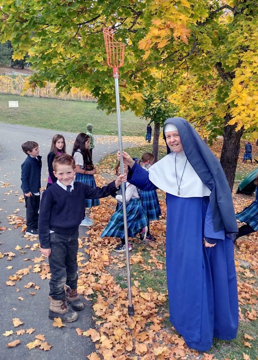 The Sisters at Holy Guardian Angels Academy in Olathe, Colorado, work with parishioners to beautify the grounds for their school’s 25th anniversary celebration.