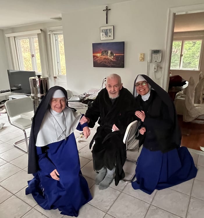 Sr. Mary Bernadette and Sr. Maria Ines visit with their long-time friend, Bob Glynn (Salem, New Hampshire).