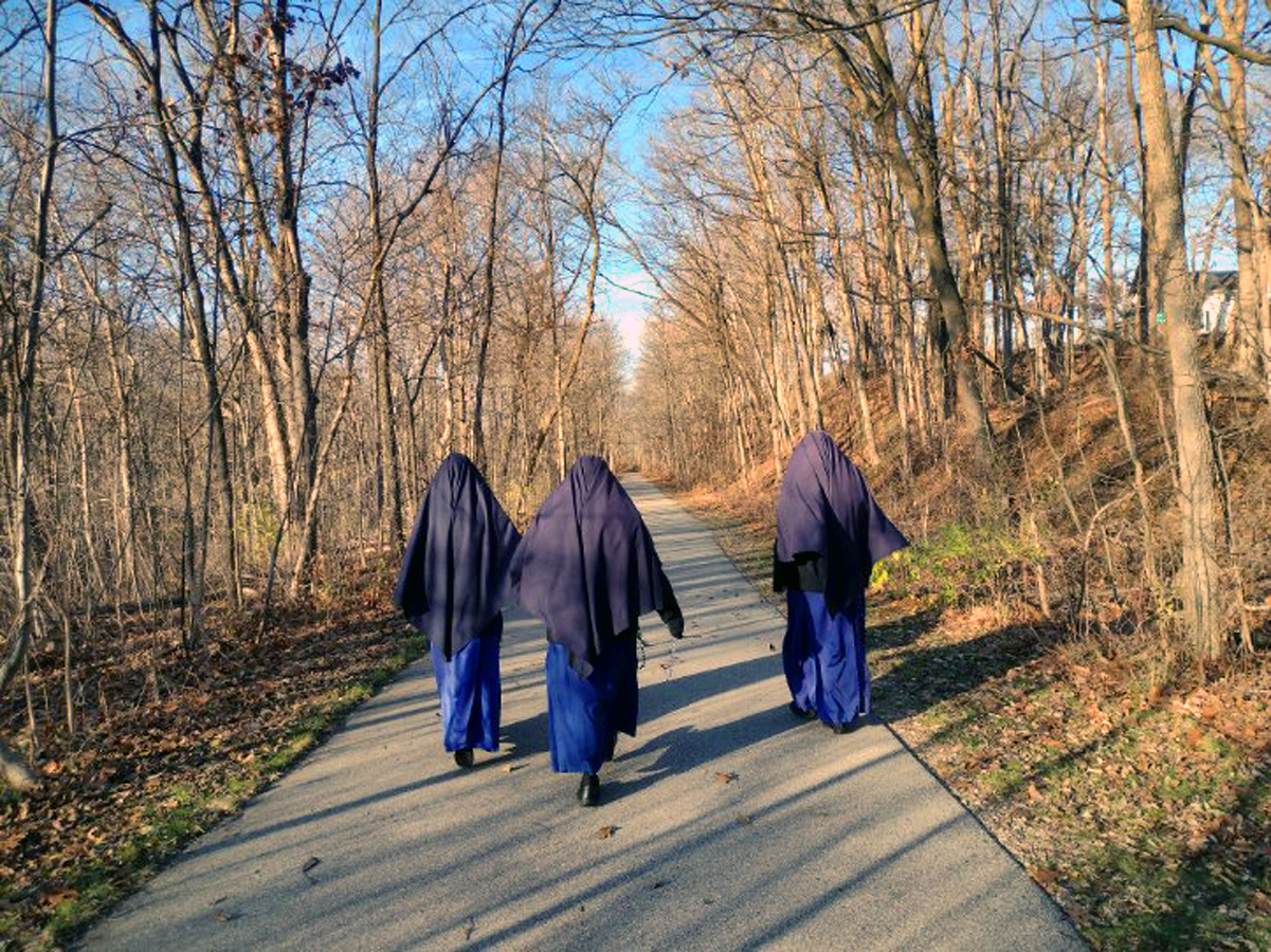 The Sisters from our two convents in Michigan are able to get together for a visit now and then. Here they are out for a walk near the convent in Middleville.