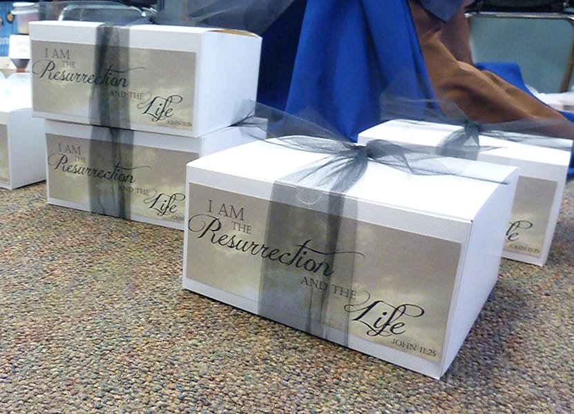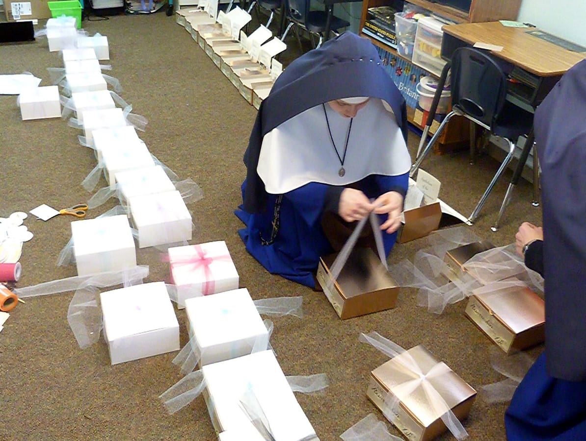 For parishioners unable to attend Holy Week liturgies at St. Mary’s in Tacoma, the Sisters prepared sacramental boxes containing blessed palms, holy cards of the