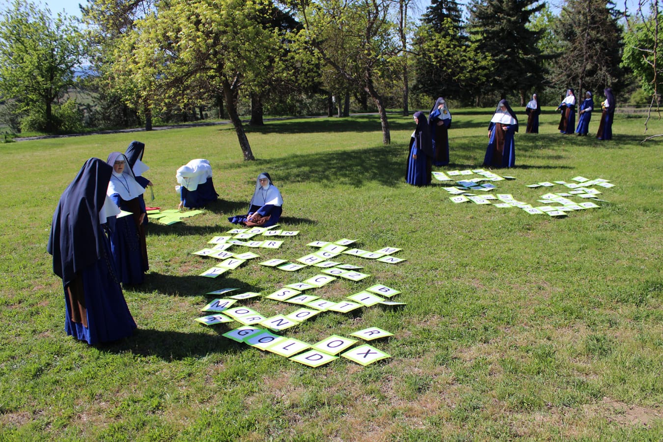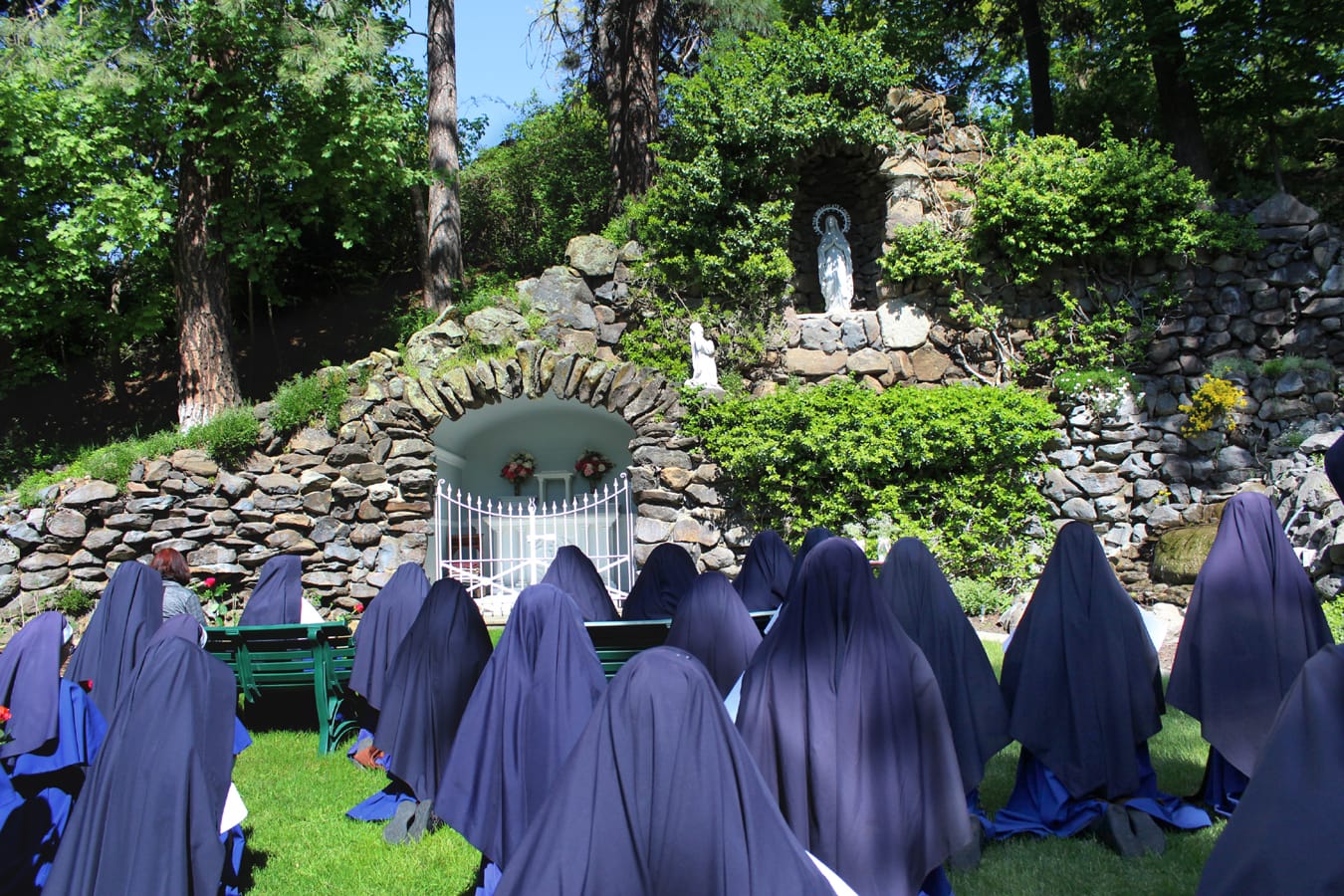 Of all Mothers the best! The Sisters honored Our Lady on Mother’s Day with the recitation of a “Living Rosary,” offering her flowers with our Aves.