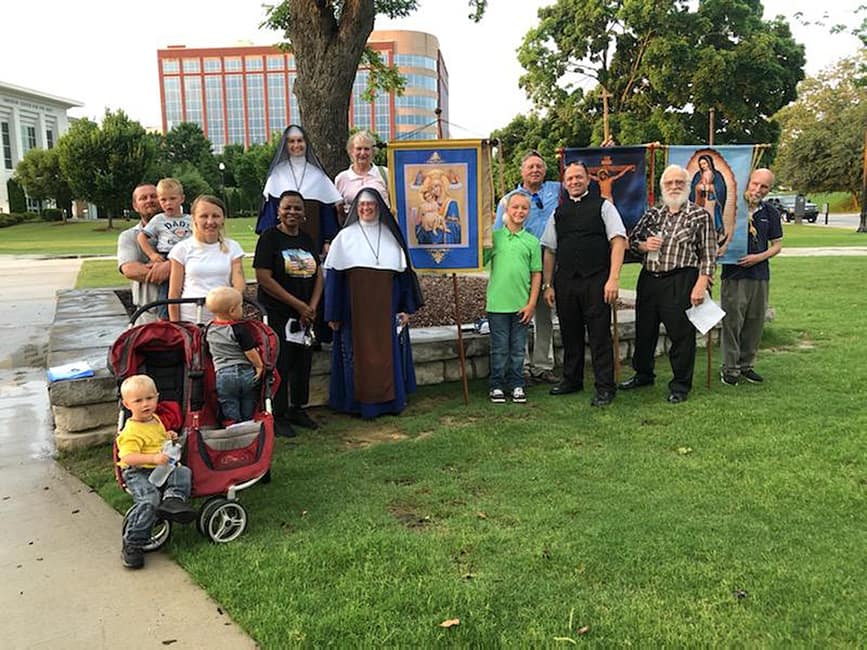 While Mother Mary Dominica and Sr. Madeleine Marie were on their catechism mission in Alabama, they joined a Rosary March on June 13th [inset] to honor Our Lady of Fatima.