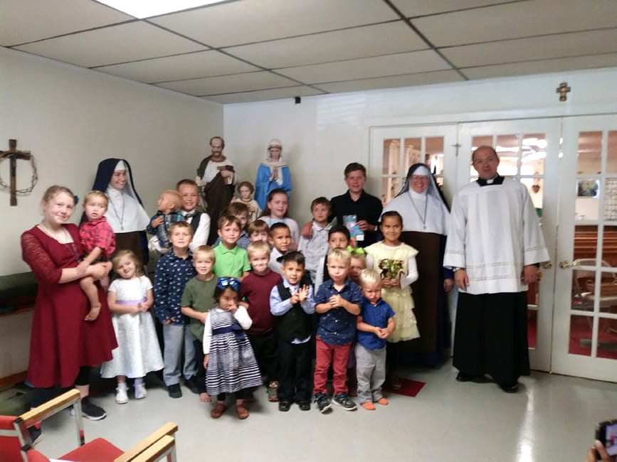 Sisters and students of Holy Guardian Angels School (Olathe, Colorado) attend the first school Mass of the year.