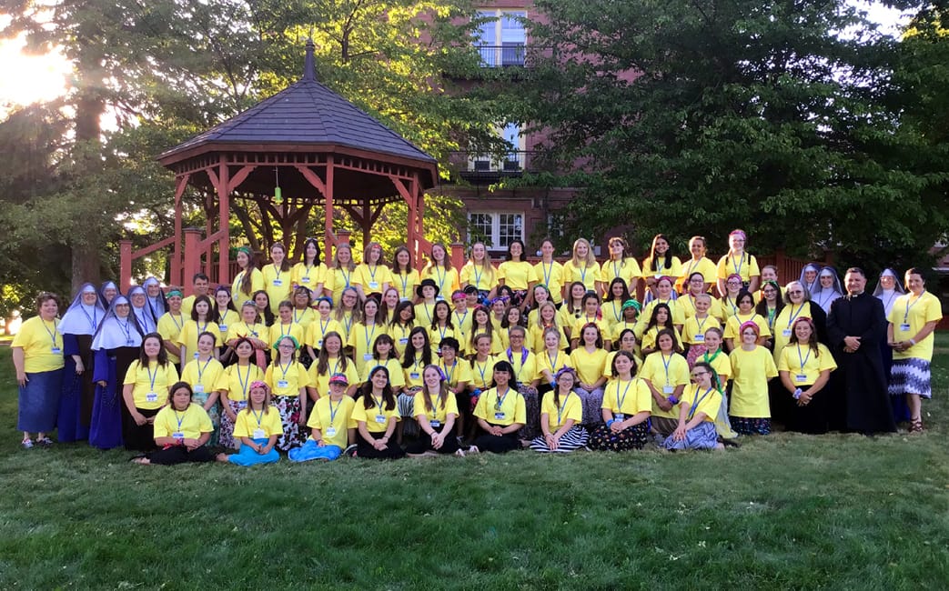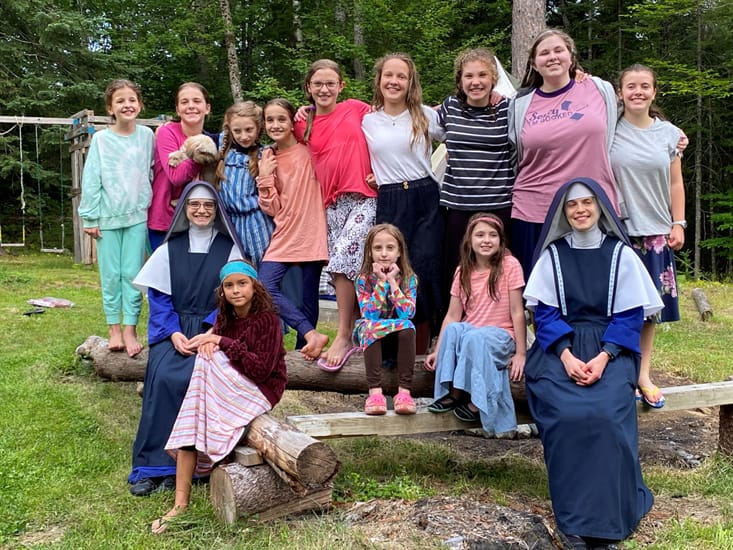 Sr. Mary Teresita and Sr. Mary Evangeline pose with the campers of Camp St. Theresa, held in New England. It was the first annual camp, filled with fun, games and catechism, of course.