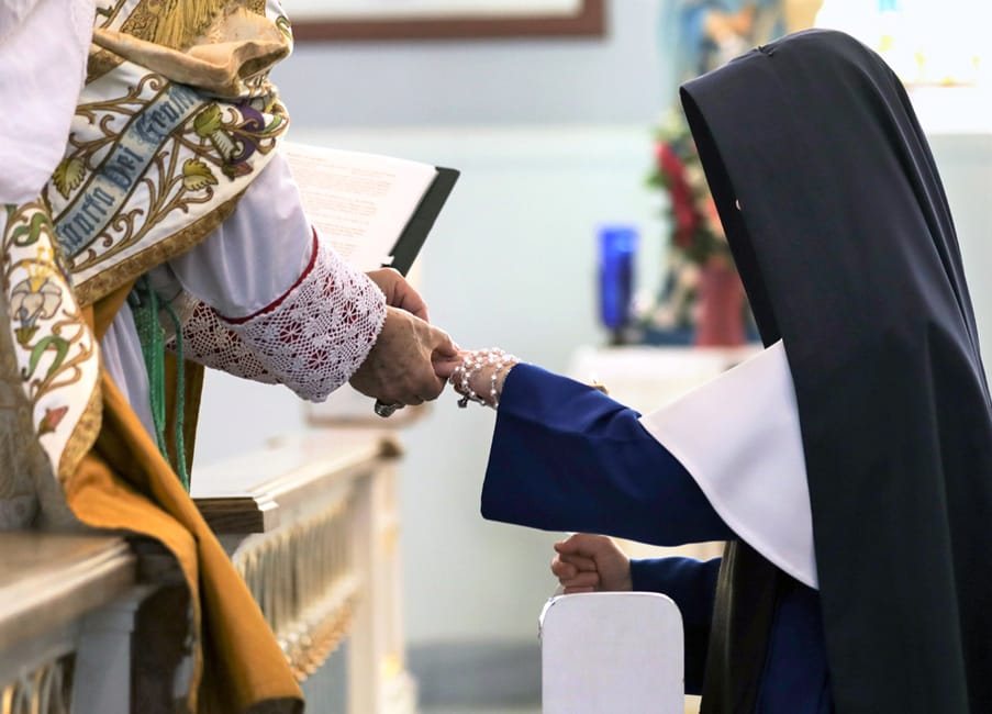 After having made profession of perpetual vows, Sr. Philomena Marie receives a gold band, a symbol of her eternal union with Christ Crucified.