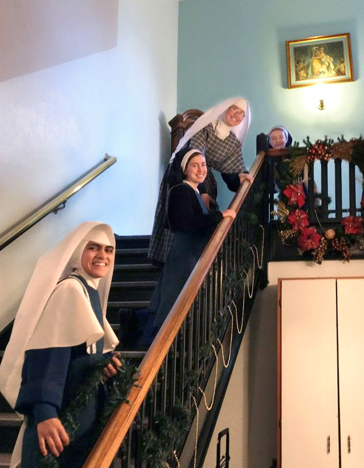 Our novitiate Sisters are a big help with decorating the Motherhouse for Christmas.