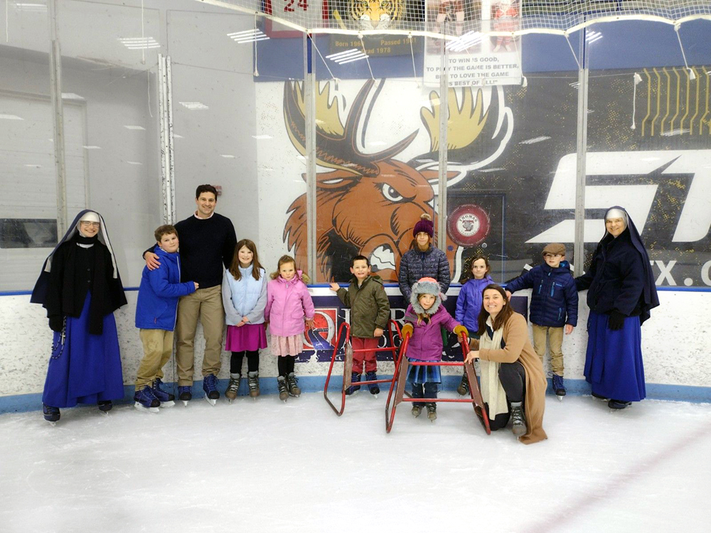 Sr. Mary Teresita and Sr. Maria Kazimiera and their students of St. Theresa homeschool in Oakland, Maine, enjoy a visit to the ice skating rink to celebrate Catholic Schools Week.