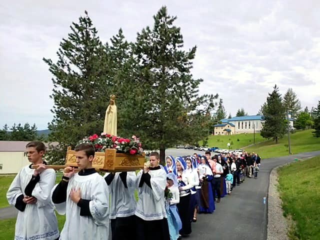 Posted on July 18, 2020July 18, 2020 by Sister Mary Agatha ← Previous Next → The statue of Our Lady of Fatima was carried in a Rosary procession as part of the Queenship ceremonies at Mary Immaculate Queen parish in Rathdrum, ID.