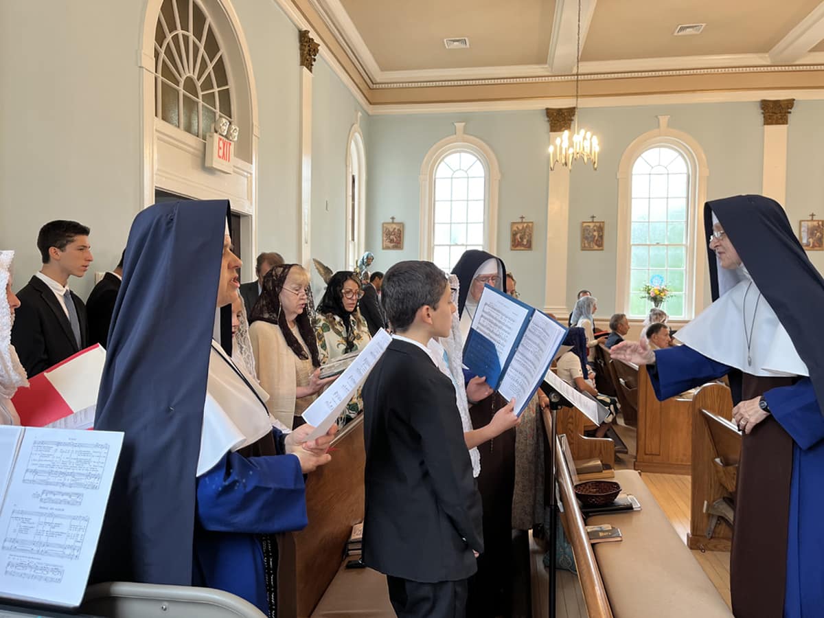 Sister Mary Bernadette directs on the feast of Our Lady of Mount Carmel, the parish titular feast. Posted on September 10, 2025September 10, 2025 by Sister Mary Agatha ← Previous Next → The parish choir at Our Lady of Mount Carmel (New Hampshire) was augmented by a guest chorale for the High Mass on the titular parish feast.