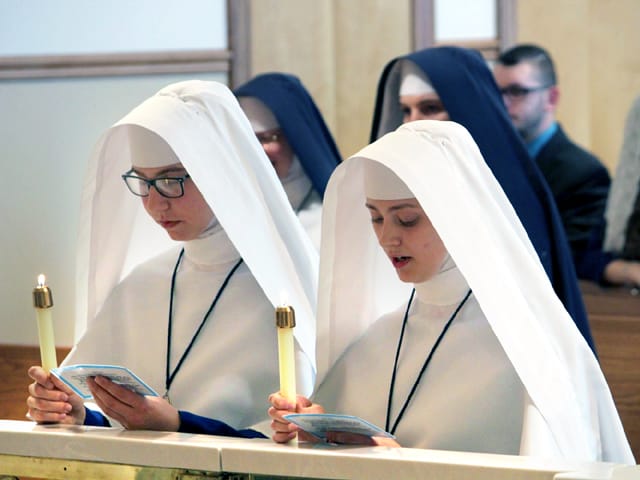 Posted on July 18, 2020July 18, 2020 by Sister Mary Agatha ← Previous Next → Sr. Margaret Mary (left) and Sr. Maria Dolorosa make profession of their first vows before receiving the blue veil of the professed Sisters.